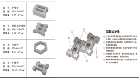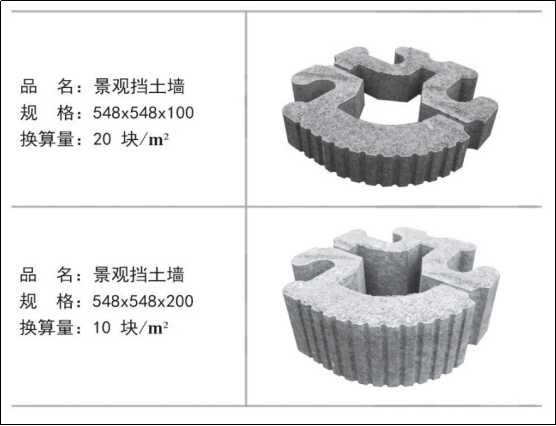 产品有三大系列 400 多个品种款型,广泛用于市政道路、公园、广场;园林景观铺装;商住小区、特色街区;交通道路工程;港口场地建设;河道生态护坡、挡墙等。产品成功销往国内 100 多个城市,并被确定为省内外数个城市的首选产品或标杆产品。分别有: