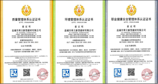 公司通过了国际质量管理体系认证、环境管理体系认证和职业健康安全管理体系认证、先后被评为国家高新技术企业、江苏省专精特新中小企业、中国建筑砌块协会副理事长单位、中国建材联合会表彰的“百家优秀企业”、国家科技型中小企业、AAA级重合同守信用企业、江苏省著名商标等多项荣誉。