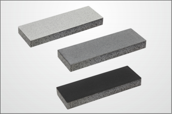 通过改进生产工艺,运用国际领先的进口生产设备,将原有的干硬性混凝土更换为流动性混凝土,采用了更为先进的静压滤水压制成型工艺,使其密实度更高,物理性能远高于传统混凝土路缘石,同时也有效的解决了传统混凝土路缘石的分层问题。产品养护后,经过定厚打磨,做出仿石材表面,使其具有更高的光洁度、耐磨度、防污性等特点,产品在市场结构处于高性能、高指标、高性价比的高端地位。同时我司主持并制定出新标准T/CUA 01-2021《湿法压滤成型仿石型混凝土路缘石》,引导路缘石在混凝土制品行业的发展方向。