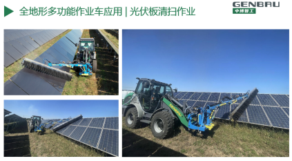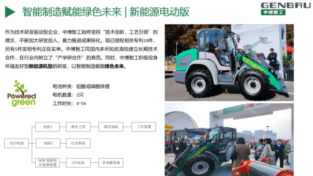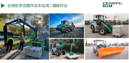 研发的智工仕系列“全地形多功能作业车”(图五),解决了国内小型工程机械设备应用单一的问题,通过液压快换装置,可不出驾驶室快速更换200多种属具,实现一台机械多种功能,可广泛应用于光伏发电,市政道路养护,园林景观养护,土方建筑施工,林场牧区农场作业,国防军工等应用场景。采用一体化车身设计,转向作业时整机重心位置不变,既保证高度的稳定性,又使举升能力恒定,极大增强作业安全性。整机采用全轮转向设计,实现极佳操控性;静液压传动设计,整机重心低,传动准确,工作过程中动态性能好,速度变化快捷柔和,冲击小,适合精细化作业。同时推出了新能源纯电版,零排放,舒适静音,绿色环保,经济高效。目前该系列产品已在市政养护,应急救援等多领域取得广泛应用。