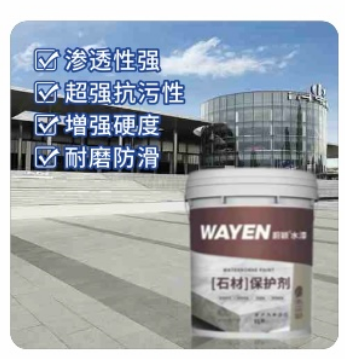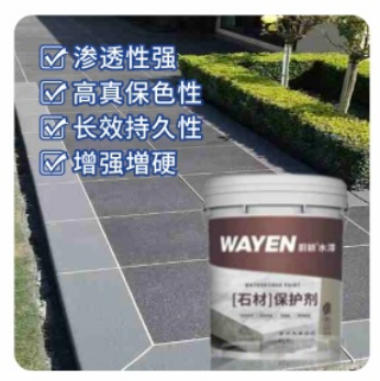 WH-6600水性石材防护剂,是比对德国进口同类产品各项性能而配制,本品具有超强荷叶疏水效果,抗污性极强,是一种水性单组分有机-无机杂化涂层材料。本品可有效保护和合理改善混凝土和矿物表面;涂层作用机理在于,纳米级粒径树脂具有强有力的渗透性,以水为载体,通过水的引导,在混凝土微孔及毛细管中进行传输、充盈,深入渗透至水泥基面2-3mm内,并与水泥发生物化反应,形成不溶于水的枝蔓状结晶体。其特点是耐碱性高、耐磨性好、耐水性好,超强的抗污性能,产生良好的易清洁效果;并可防止污染(如土壤、食物、油脂、气溶胶、落叶花果等),以及防止破坏性的环境影响。经涂表面可达到更长的使用寿命和延长自然老化,是一款具全面综合性能的超效型石材保护材料。